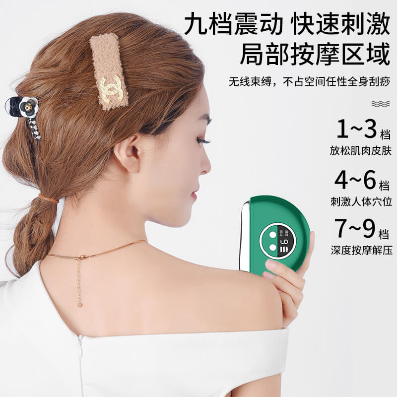 刮痧板:面部美容提拉一板全部搞定,三角固定,手持更舒适,九档发热恒温亲肤,双边红光,深层调理肌体,九挡震动快速刺激局部按摩区域,无线手持鞋带更加方便,新升级智能芯片灵敏控制,鸿展通刮痧板口袋里的按摩师。